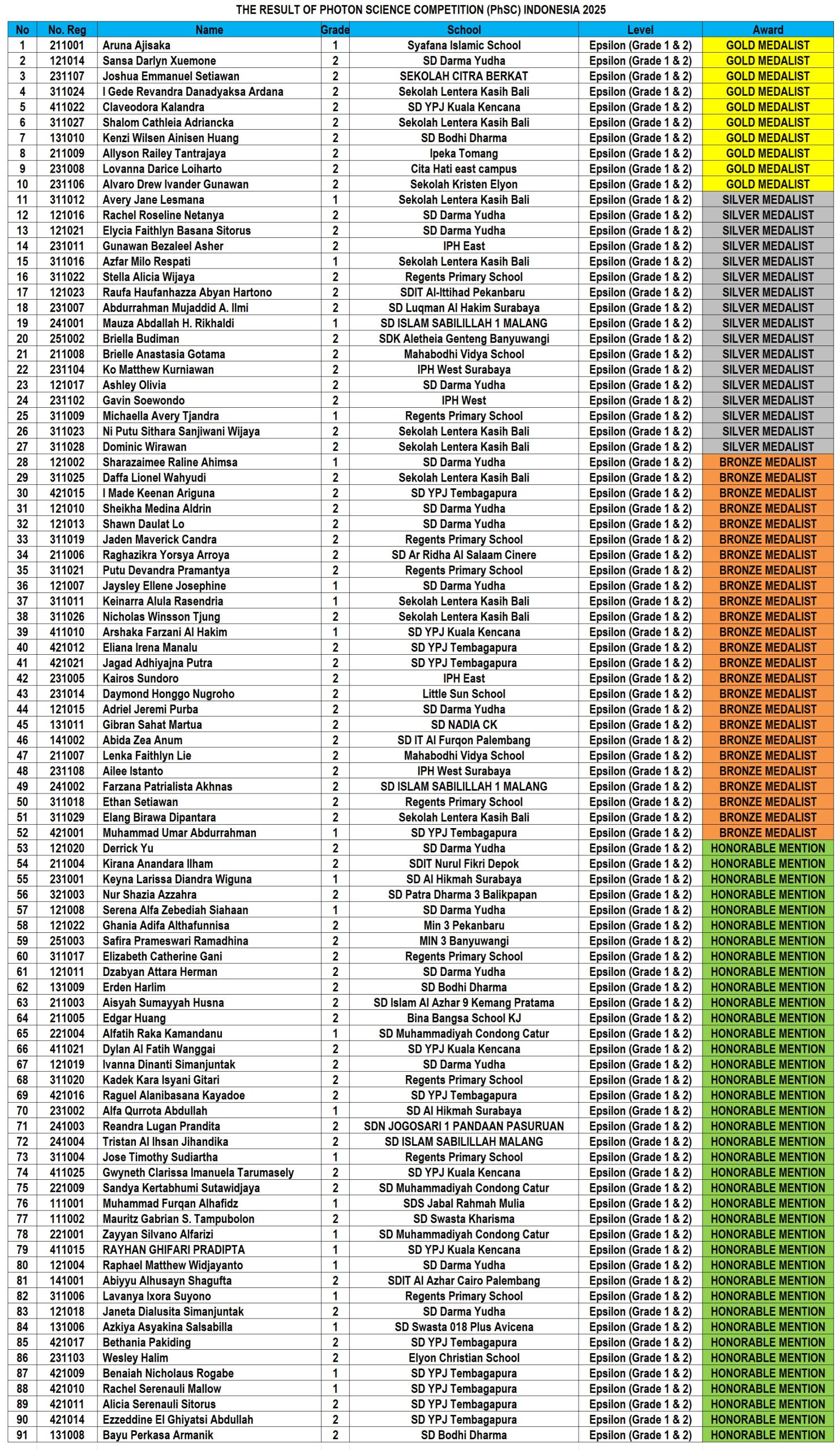 RESULT OF THE PHOTON SCIENCE COMPETITION (PhSC) 2025 INDONESIA
