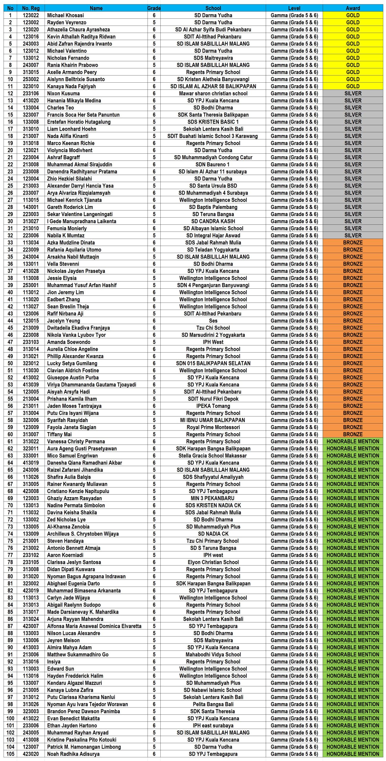 GAMMA (Grade 5-6): 211 students.