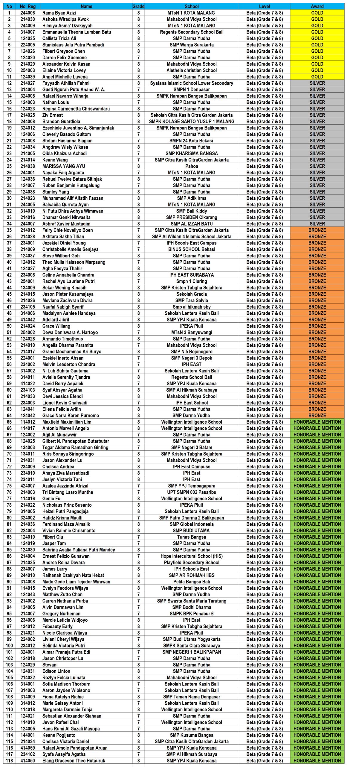 BETA (Grade 7-8): 239 students.