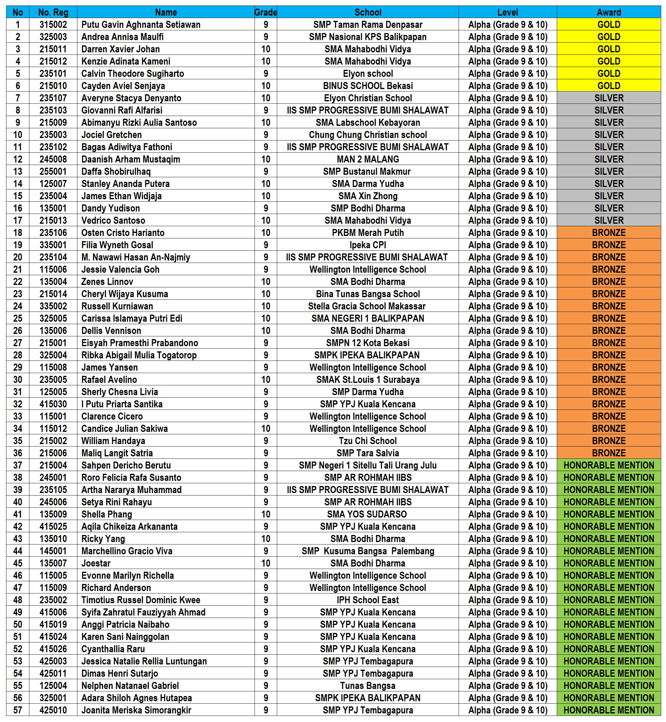 ALPHA (Grade 9-10): 114 students.